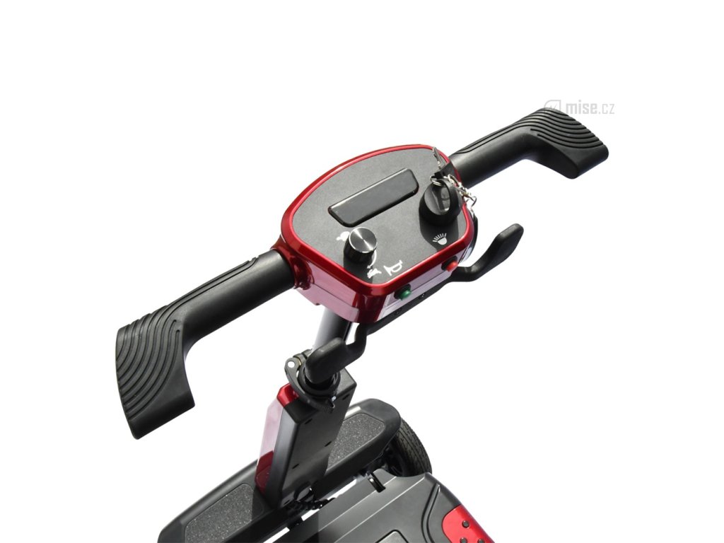- čtyřkolový elektrický skútr s výjimečným výkonem 180 W se ovládá pomocí páček na řídítkách, na ovládacím panelu je možné mimo jiné otočným knoflíkem omezit i maximální rychlost, plynule reaguje na stlačení páčky s ovladačem výkonu a to i v kopcovitém terénu nebo při rozjezdu z křižovatky