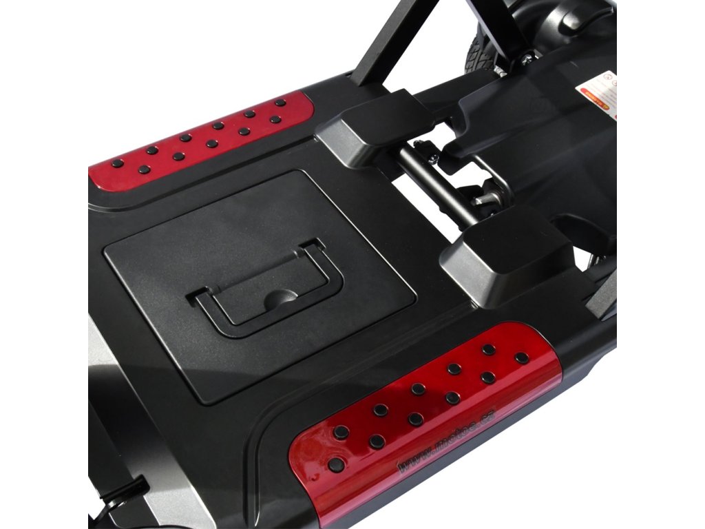 - stroj je plně odpružený s vyjímatelnou LITHIOVOU baterii pro snadnější dobití A ZÁROVEŇ ELEKTRICKY SKLÁDACÍ S DÁLKOVÝM OVLADAČEM