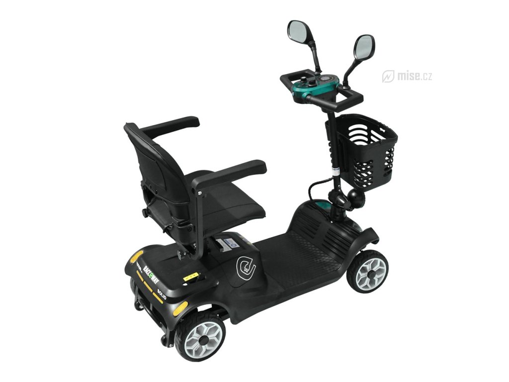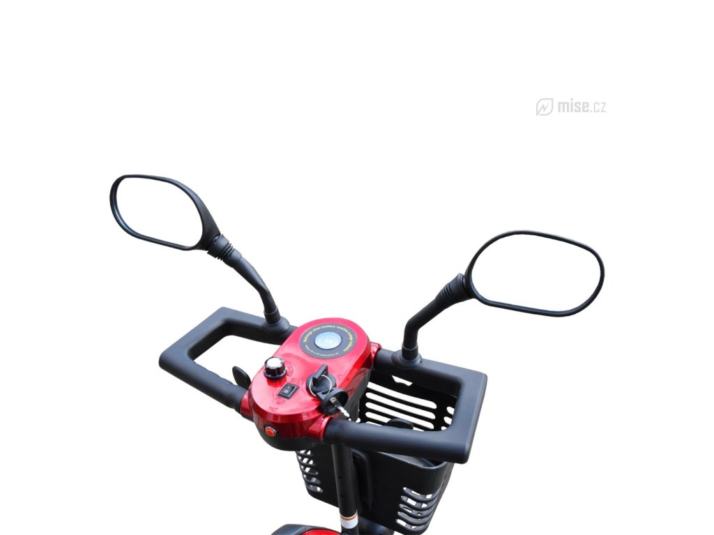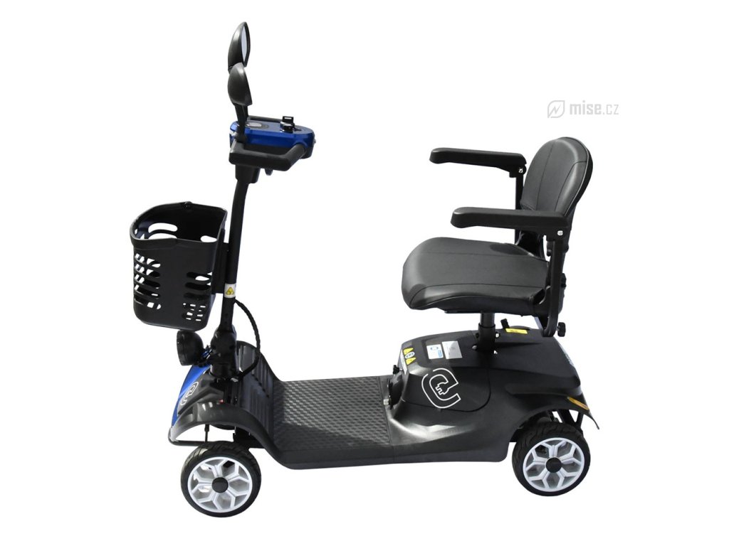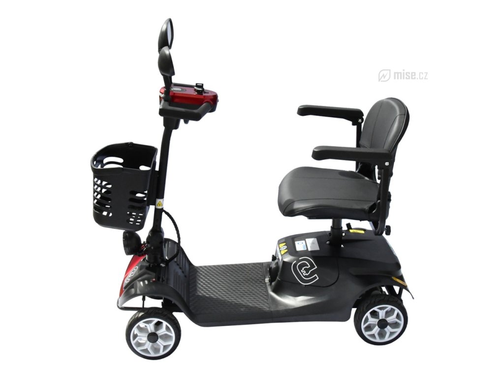 - čtyřkolový elektrický skútr s výjimečným výkonem 350 W se ovládá pomocí páček na řídítkách, na ovládacím panelu je možné mimo jiné otočným knoflíkem omezit i maximální rychlost, plynule reaguje na stlačení páčky s ovladačem výkonu a to i v kopcovitém terénu nebo při rozjezdu z křižovatky