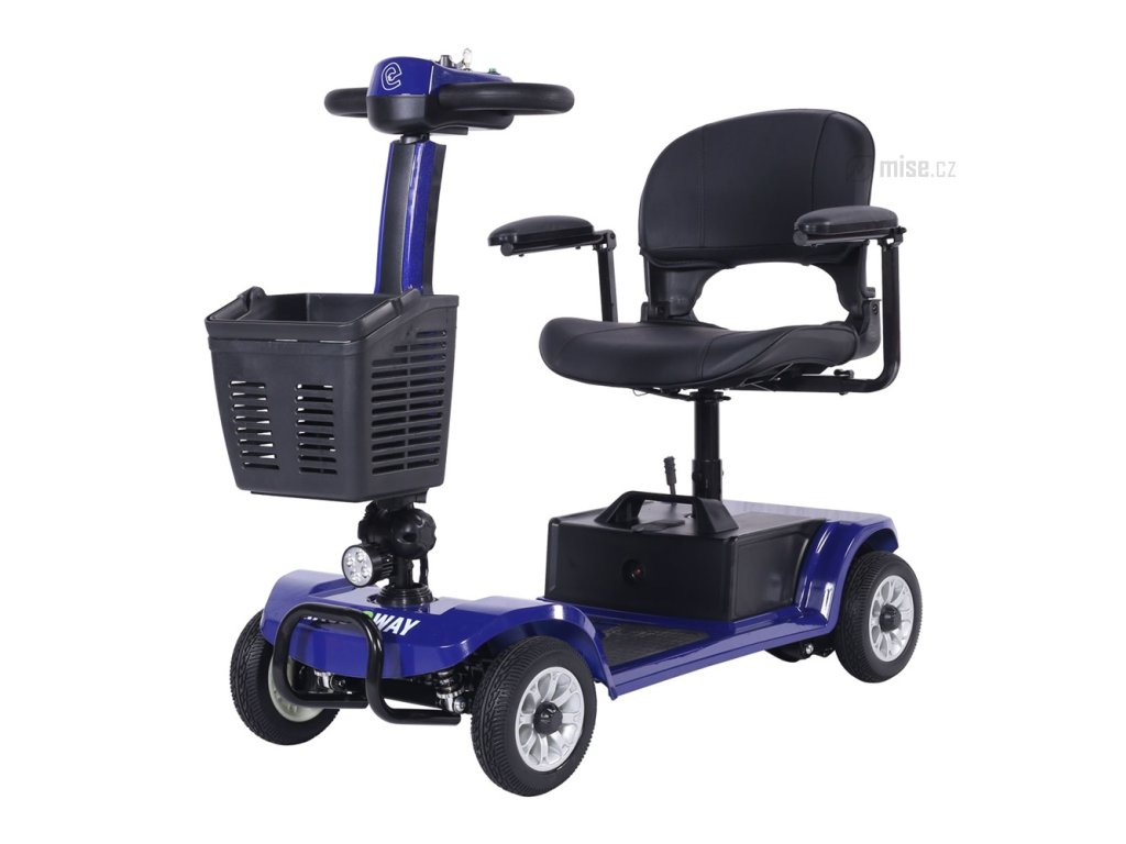 - čtyřkolový elektrický skútr s výjimečným výkonem 250 W se ovládá pomocí páček na řídítkách, na ovládacím panelu je možné mimo jiné otočným knoflíkem omezit i maximální rychlost, plynule reaguje na stlačení páčky s ovladačem výkonu a to i v mírně kopcovitém terénu nebo při rozjezdu