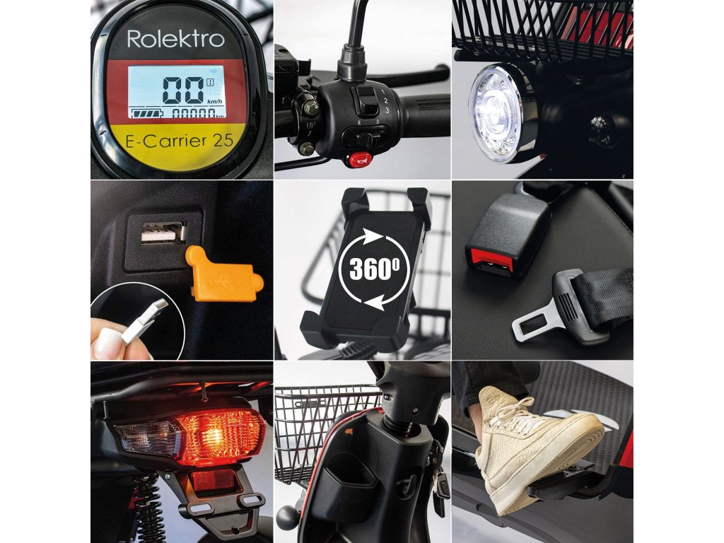 E-Carrier 25 má velmi malý poloměr otáčení. Snadnější manévrování umožňuje zpátečka. Nastavitelný držák mobilního telefonu je umístěný na řídítkách, takže v zorném poli řidiče bezpečně vidíte navigační přístroje nebo telefon. Výjimečná kapacita vyjímatelné lithiové baterie s 60 V / 32,5 Ah umožňuje dojezd až 90 km, čímž nastavuje nové měřítko ve své třídě vozidel.