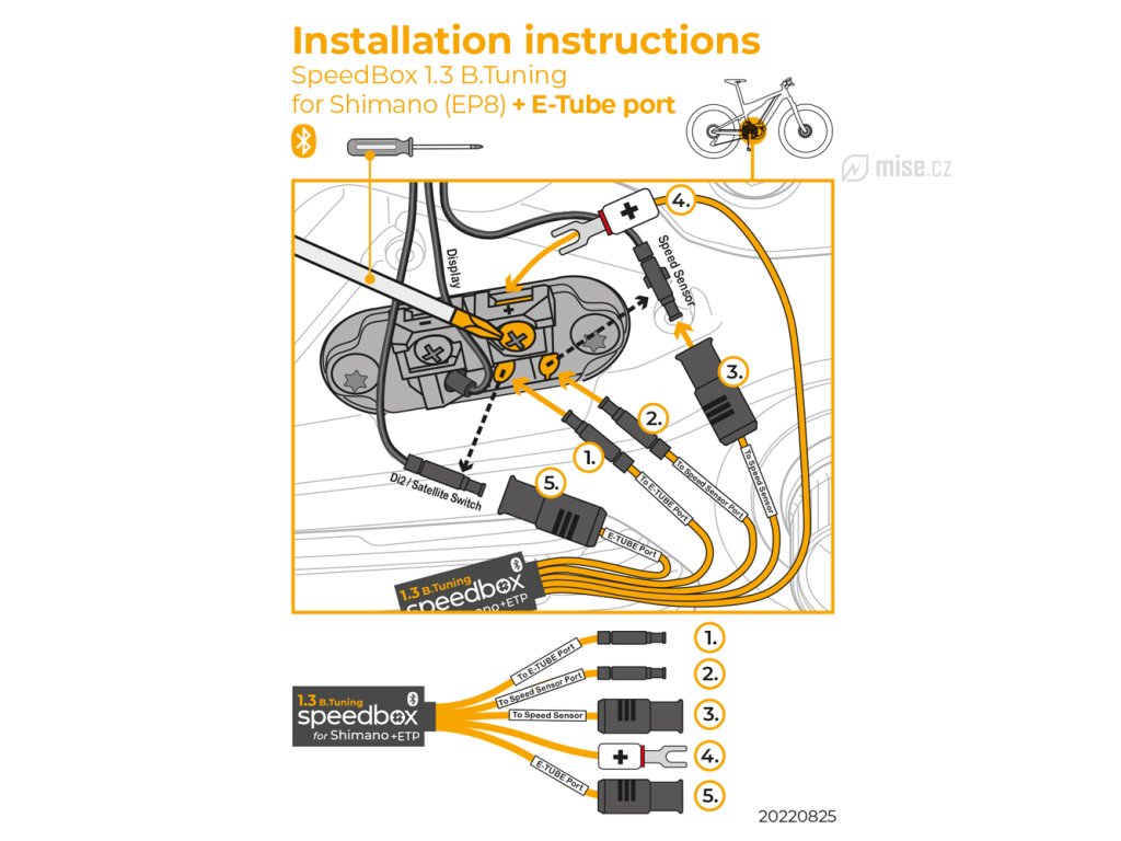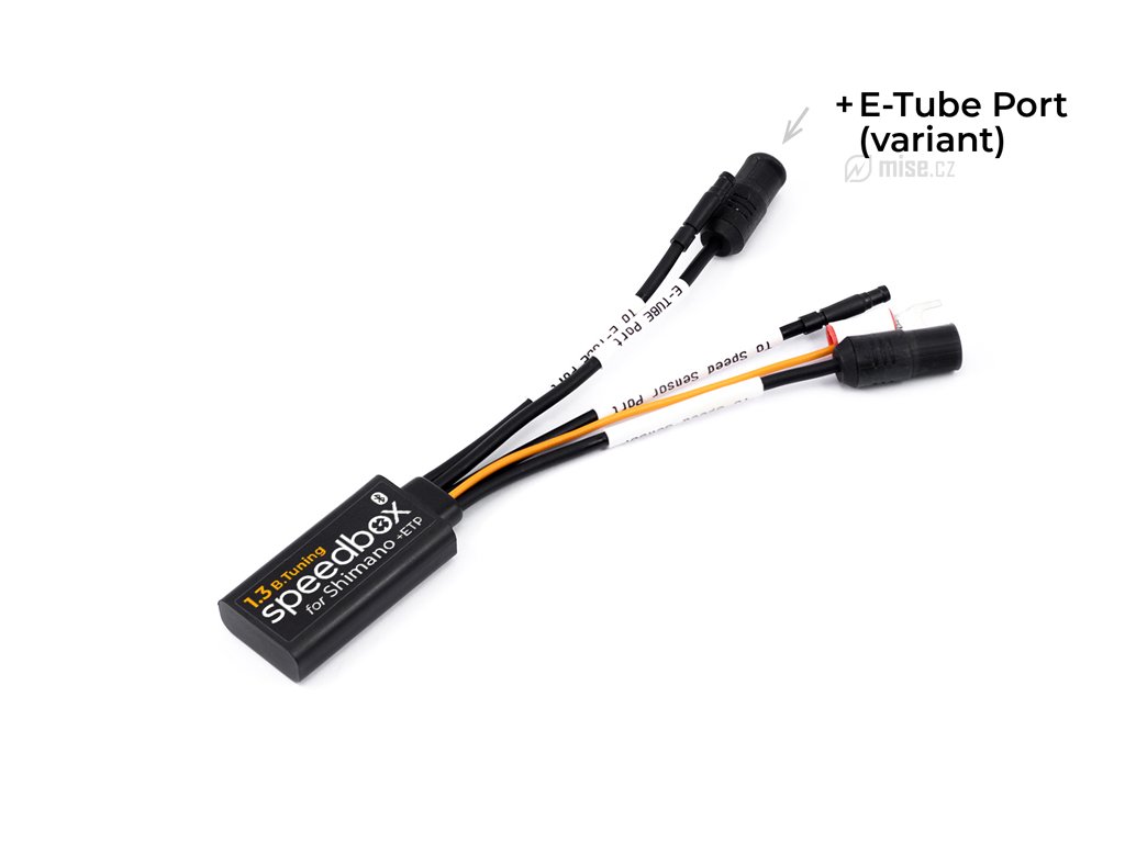 Tento nový produkt se oproti předchozím verzím zapojuje i do E-Tube portu motoru. Je tedy potřeba, aby motor elektrokola, do kterého se chystáte novou verzi SpeedBox for Shimano nainstalovat, měl k dispozici jeden volný E-Tube port. V případě, že nemáte volný E-Tube port, zvolte, prosím, variantu “+E-Tube Port”.
