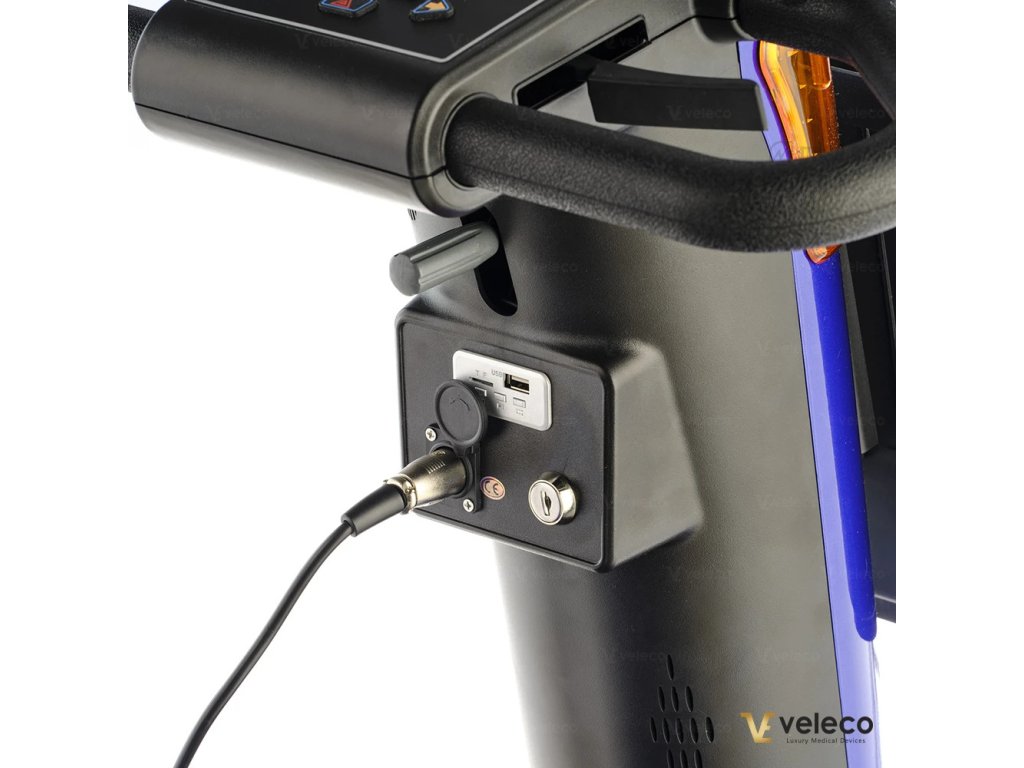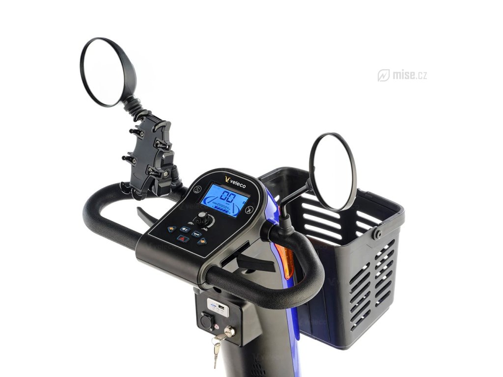 - Výbava: nabíječka, klakson, zpětná zrcátka, digitální displej, port USB a slot na kartu, pohodlné sedadlo s vyšší opěrkou, bezpečnostní kolečka proti převrácení, plynulá volba rychlosti, bluetooth reproduktor, držák mobilního telefonu, zpátečka, osvětlení, přední plastový košík